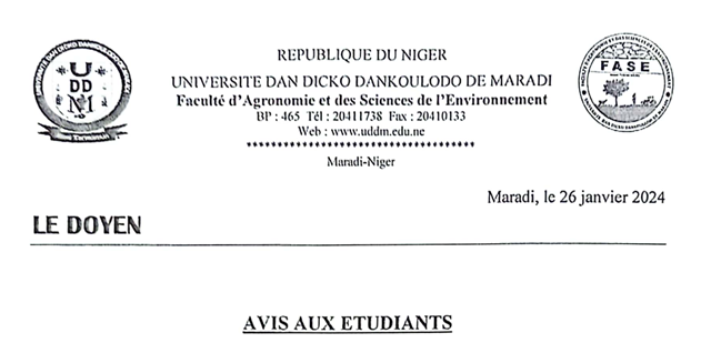 Le Recteur de l’Université Dan Dicko Dankoulodo de Maradi (UDDM) invite tous les étudiants à prendre part massivement à l’atelier Lire la suite… NOTE D’INFORMATION JT004/UDDM/REC/2024 A L’ATTENTION DES ETUDIANTS DE L’UDDM