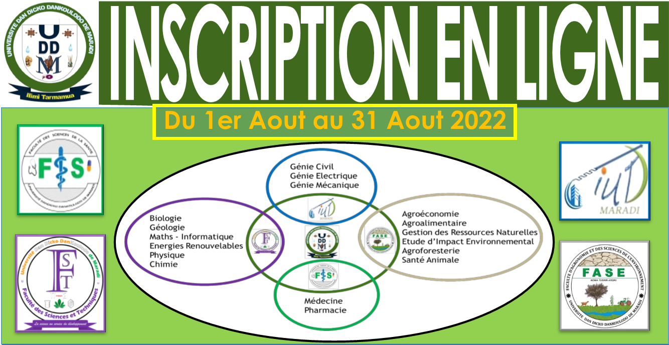 Le Recteur de l’Université Dan Dicko Dankoulodo de Maradi (UDDM) porte à la connaissance des bacheliers qui désirent s’inscrire à l’UDDM que les inscriptions en ligne débuteront le lundi 1er aout 2022 et prendront fin le mercredi 31 aout 2022.