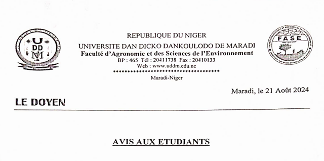 L’AUDITORIUM de la Faculté D’Agronomie et des Sciences de l’Environnement de l’UDDM , a abrité hier Lundi 30 septembre 2024, Lire la suite… RETOUR SUR LE LANCEMENT DE L’ATELIER NATIONAL DE VALIDATION DES CURICULA DE L’ÉCOLE SUPÉRIEURE POLYTECHNIQUE DE MARADI